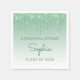 Ces serviettes en papier chic et élégantes de fête de remise des diplômes présentent une fausse parties scintillant verte brillante et un arrière - plan sombre. Personnalisez-les avec le nom de l'invitée d'honneur en écriture manuscrite verte, avec son année de classe ci-dessous en police sans serif. Idéal pour obtenir un diplôme d'études secondaires ou collégiales.