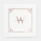 Serviette En Papier Clé grecque blanche et Rose rose or Monogramme