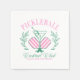Ces serviettes de pickleball ont une image d'art en ligne rose et verte de pédales de pickleball et un verre de martini entouré de branches de laurier avec l'expression "Pickleball Cocktail Club, Please Dink Responbly". Les couleurs utilisées sont le vert et le rose.