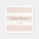 Ces serviettes à cocktails sont ornées d'un motif à rayures peintes en rose vif sur un arrière - plan blanc à la typographie simple et élégante. Customisez avec les noms des mariés et des mariés et une date mariage.