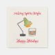 Serviettes de boissons de vacances avec verre de whisky qui disent "Rendre les esprits brillants." Cocktail sous la lumière.