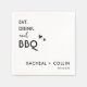 Nappes minimalistes noires et blanches 'Love and BBQ' simples personnalisées pour la fête d'anniversaire du Fiançailles Mariage | Vous pouvez également modifier la couleur du texte et de l'arrière - plan.