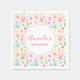 Serviettes en papier avec un motif délicieux et fantaisiste. Coeurs, lettres d'amour, muffins, tulipes et cerises apportent joie et bonheur à ce mignon petit motif. Jolies couleurs pastel. Un cercle blanc avec une fausse bordure en feuille d'or superposée avec votre texte à l'intérieur.