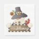 Un personnage de style champêtre tenant un signe qui dit compter vos bénédictions. Ce design semble vraiment efficace sur ces serviettes en papier