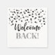 Bienvenue serviettes avec motif Argent et confetti noir.