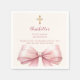 Couleur arrière - plan crème, beige. Décoré d'un grand arc rose et d'une croix dorée. Personnalisez et ajoutez le nom, la date et un texte.