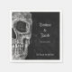 Cool macabre gothique texture grunge noir et blanc imprimé demi crâne tête mariage serviettes de cocktail. Éffrayant, déplaisant, mauvais, sinistre. Personnalisé, tendance, unique, moderne, effrayant style Halloween design. Copyright de l'image Marg Seregelyi Photography.