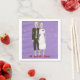 Ma peinture amusante d'un couple de squelettes, portant une robe mariage et un petit tux, est imprimée sur des serviettes en papier. Il y a un espace réservé modèle pour les noms du couple sous les squelettes, avec le texte écrit en rouge. La cravate arc sur le tux et la fleur sur la robe sont également rouges. Achetez en ligne chez CherylsArt sur Zazzle.