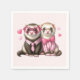 Serviettes en papier avec une jolie illustration. Une paire de loutres en vêtements rose. Portant des chemises rayées, l'une portant une cravate et l'autre portant un arc. Entouré de coeurs d'amour.