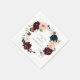 Couronne de fleurs automnale rustique, serviettes en papier personnalisées. Fleurs aquarelles bleues marine, bordeaux et rose pâle avec une verdure délicate et des accents floraux artistiques esquissés au charbon. Le modèle offre deux espaces pour les noms et la date de l'événement.