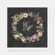 Cette conception chic de serviette comporte une couronne fleur sauvage de style vintage sur un arrière - plan noir avec des champs de texte modifiables pour votre monogramme.