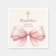 Couleur arrière - plan crème, beige. Décoré d'un grand arc rose et d'une croix dorée. Personnalisez et ajoutez le nom et la date.