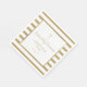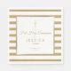 Élégante serviette en papier Première Sainte Communion rayée d'or et de blanc avec une croix d'or avec une bordure en feuille d'or fantaisie chic qui encadre les détails de l'événement de célébration définis dans le texte moderne. Personnalisez avec le nom de votre enfant et la date spéciale. Conçu par Thisisnotme©