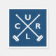 Serviette en papier avec balais croisés à curling sur arrière - plan bleu.