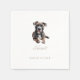 Custom Pet Wedding Napkins. Either send me a picture of your dog that I can use, change out the picture yourself, or tell me the breed of the dog and I can send you a mockup of the napkin. This is a Pit Bull. The changes need to be made before the napkin is ordered. The designer does not handle the printing or shipment.