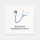 Medical retirement paper napkins with an illustration of an stethoscope, perfect for nurses, doctors, and other caregiver's retirement parties. Illustrated and designed by Patricia Alvarez.