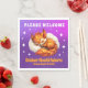 Celebrate the arrival of your little lady with these paper napkins, which feature an illustration-style image of an adorable young fox cub with golden, flame-like fur, dreaming happily in the starry night skies. Customize with baby's name, date of birth (or event date), and even the background color.