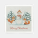 Serviette En Papier Cute Foxes and Snowman Merry Christmas