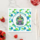 Cute grenouille thème personnalisé fête d'anniversaire serviettes en papier pour l'anniversaire d'un garçon. Une adorable grenouille dans un casquette d'anniversaire tenant un cadeau avec un mignon arrière - plan pois en bleu et vert. Modifiez le texte dans la zone de personnalisation.