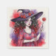 Ces serviettes en papier sont équipées d'une sorcière fantaisie portant des marguerites roses rouges à l'aquarelle.