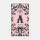 Cette serviette d'hôte est décorée d'une silhouette de lustre, de chauves-souris, d'une araignée et d'un chat noir sur un arrière - plan damassé noir et rose. Vous pouvez personnaliser avec votre initiale et votre nom de famille.
