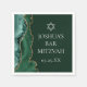 L'agate chic vert foncé et or orne le côté de cette serviette de soirée barbecue moderne. Le nom de votre fils est écrit dans une belle écriture formelle sous l'Étoile de David. Parfait pour une famille juive chic et élégante célébrant l'appel de leur garçon à la Torah.