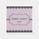Créez vos propres serviettes de cocktail mariages personnalisées. Ces serviettes présentent vos noms et la date mariage à l'intérieur d'un cadre orné avec une illustration en dentelle noire contre un arrière - plan en lavande douce avec un motif impoli.
