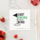 Dernière balançoire verte, noire et blanche devant les serviettes de la bachelorette anneau. Personnalisez-le avec les détails de votre événement.