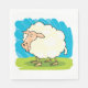 Un drôle de dessin de Woolley blanc qui regarde des moutons. Ce design semble vraiment efficace sur ces serviettes en papier