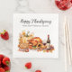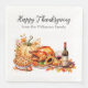 Ces serviettes personnalisées ont un élégant thème Thanksgiving dîner. Une image aquarelle de divers aliments et fleurs d'un dîner Thanksgiving est placée dans la partie inférieure. Une dinde rôtie est placée entre une tarte aux pommes et une bouteille de vin. Un citrouille festif et un feuillage d'automne sont placés derrière la fête. Un message d'accueil "Bon thanksgiving" est placé en haut dans une police de caractères élégante, suivi d'un exemple de nom de famille. Vous pouvez personnaliser les serviettes pour inclure votre propre nom ou message personnalisé.