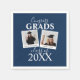 Serviettes modernes pour la fête de la double graduation, qui présente 2 photos de la diplômée. Les serviettes ont un texte modèle qui dit "FÉLICITE LES DIPLÔMES, LEURS NOMS, L'ANNÉE DE DIPLÔME, ET LEUR NOM D'ÉCOLE OU DE COLLÈGE". Tous les styles de police et les couleurs arrière - plans peuvent être modifiés en cliquant sur le lien customiser après la personnalisation. *S'il vous plaît, envoyez-moi un message si vous avez besoin d'aide.