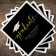 Ce design comprend une soirée moderne et supérieure, une soirée secondaire ou collégiale, une serviette en papier de cocktail grad party, une classe de nom personnalisée, une typographie noire de base design branchée, des fournitures de grad party graduation, un design moderne contemporain simpliste, un casquette de bouchon de graduation en carton de mortier, un mortier minimaliste, une table de desserts grad diner et une serviette
