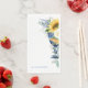 Fête des mariées Serviettes d'hôtes. Simple. Méditerranée. Floral. Fleurs de soleil. Gobelet bleu méditerranéen.