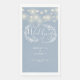 Décorées dans un style mariage bleu-duché, avec de jolies lampes à cordes et des fleurs, ces serviettes d'hôtes en papier design peuvent être personnalisées avec vos informations en lettrage blanc chic. Conçu par Thisisnotme©
