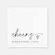 Célébrez dans le style avec ces serviettes de cocktail modernes en noir et blanc "cheers" - un accent chic et amusant pour les mariages, fiançailles, dîners de répétition ou anniversaires. Doté d'un élégant script manuscrit et d'un coeur dessiné à la main, ce design simple et élégant ajoute une touche de personnalité à chaque toast. Customisées avec les noms et la date du couple, ces serviettes allient élégance classique et charme moderne, créant un détail raffiné pour toute célébration.