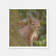Un écureuil roux à l'air malicieux qui sort de derrière un arbre.