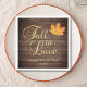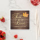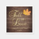 Des serviettes en papier de cocktail personnalisées à thème rustique pour votre réception de mariage. Couleurs à thème automne/automne en or dans les teintes orangées de la feuille d'érable métallique et panneau en bois foncé. Trouvé dans 'FALL IN LOVE - COUNTRY' collection mariage.