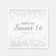 Doux serviettes en papier de fête de 16 ans en blanc avec parties scintillant en argent et une élégante calligraphie / police de script. La couleur arrière - plan et textuelle de ces serviettes sont entièrement personnalisables, alors concevez-les pour votre célébration.