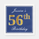 Serviette En Papier Elégant bleu, Faux Gold 56e anniversaire; Nom pers