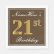 Serviette En Papier Elégant Brown, Faux Gold 21ème Anniversaire + Nom