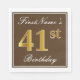 Serviette En Papier Elégant Brown, Faux Gold 41ème Anniversaire + Nom