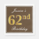 Serviette En Papier Elégant Brown, Faux Gold 62ème anniversaire + Nom