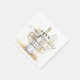 Stylish New Year's Eve party cocktail napkins feature a watercolor champagne bottle and gold and white balloons with your details in chic lettering.