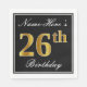 Serviette En Papier Elégant, Faux Gold 26e anniversaire + Nom personna
