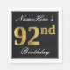 Serviette En Papier Elégant, Faux Gold 92e anniversaire + Nom personna