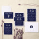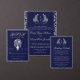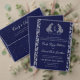 This design features navy blue heritage crest, delicate monogram initials, elegant script typography, a subtle luxury linen texture, with a detailed botanical leaf engraving pattern in silver color. Perfect for classic, royal-themed, old-money, and formal black-tie weddings. This product can be easily personalized. If you need help with the customization of the product or need matching products kindly please contact me via Zazzle.