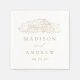 Des serviettes en papier mariage élégantes et rustiques, illustrées d'une illustration esquissée d'une grange d'or et d'une toile de fond de forêt avec un arrière - plan blanc. Personnalisez les serviettes mariage de la grange avec vos noms et la date de mariage ci-dessous. Les serviettes de mariage de grange personnalisées sont parfaites pour votre pays et les couples mariages sur le thème de la ferme douches, dîners de répétition, réceptions, etc.