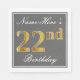 Serviette En Papier Elégant Grey, Faux Gold 22e anniversaire; Nom pers