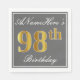 Serviette En Papier Elégant Grey, Faux Gold 98e anniversaire; Nom pers