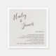 Des serviettes mariages simples avec vos noms dans un élégant script manuscrit en haut à gauche et une liste de faits amusants sur vous sur un arrière - plan gris clair / argent. Le design minimaliste est agrémenté d'une touche romantique grâce au lettrage à la main chic.